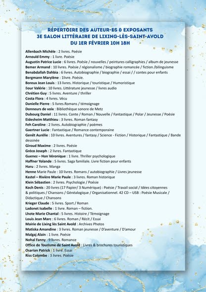 3° Salon du Livre 2026, à Lixing-les-Saint-Avold (57).